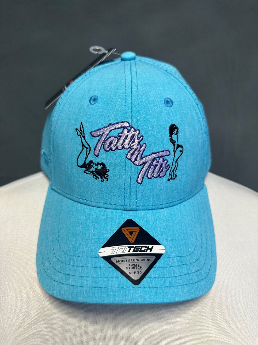 Custom Heather Gray Hat with Blue Tatts N Tits Logo