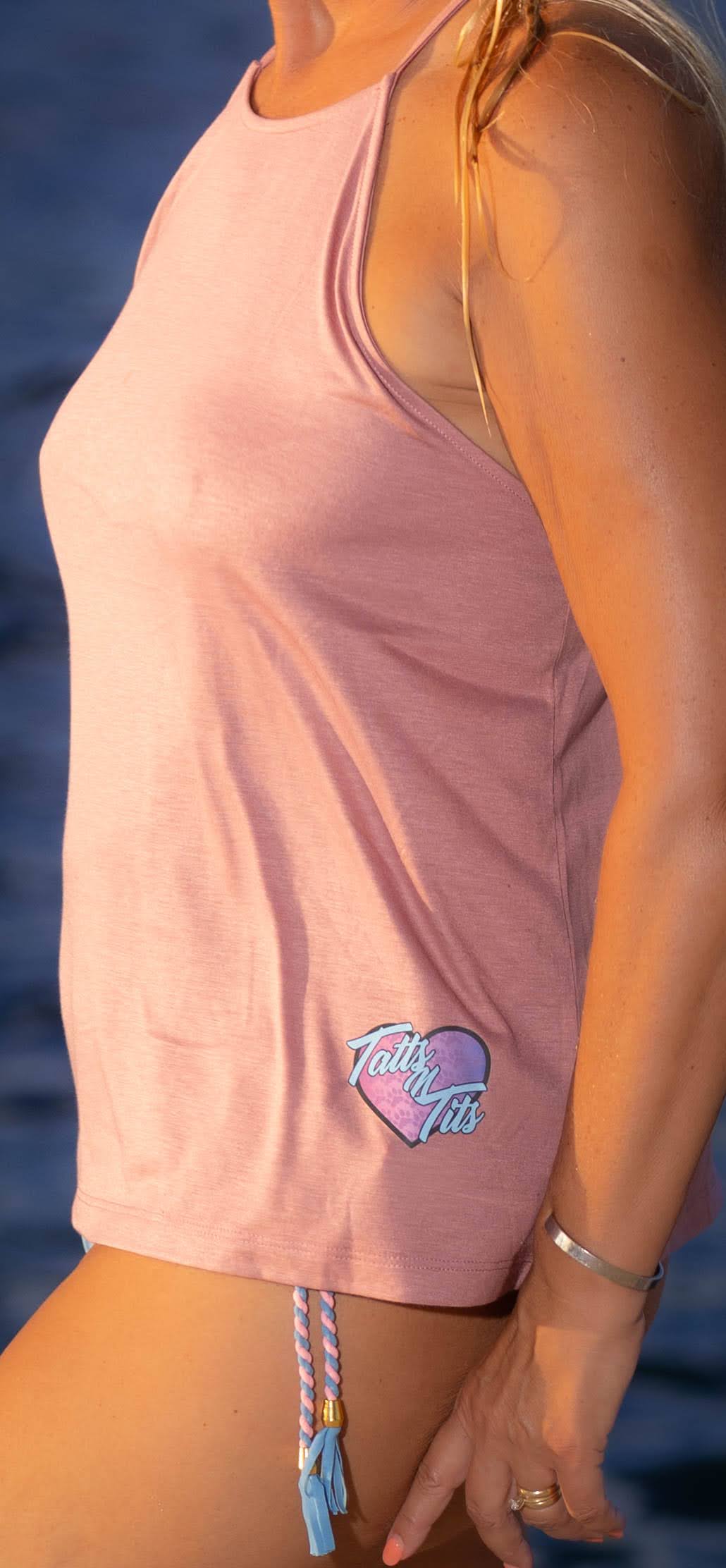 Spaghetti Strap High Neck, drapey fit, Mauve, Tatts N Tits Logo’d, super comfy, true to size